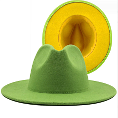 Шляпа Федора фетровая 2 цвета, салатовый+желтый Шляпа Федора фетровая 2 цвета, салатовый+желтый