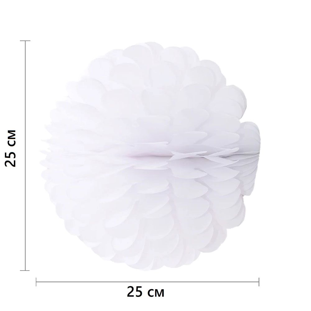 Бумажное украшение Цветочный шар-соты 25 см, белый