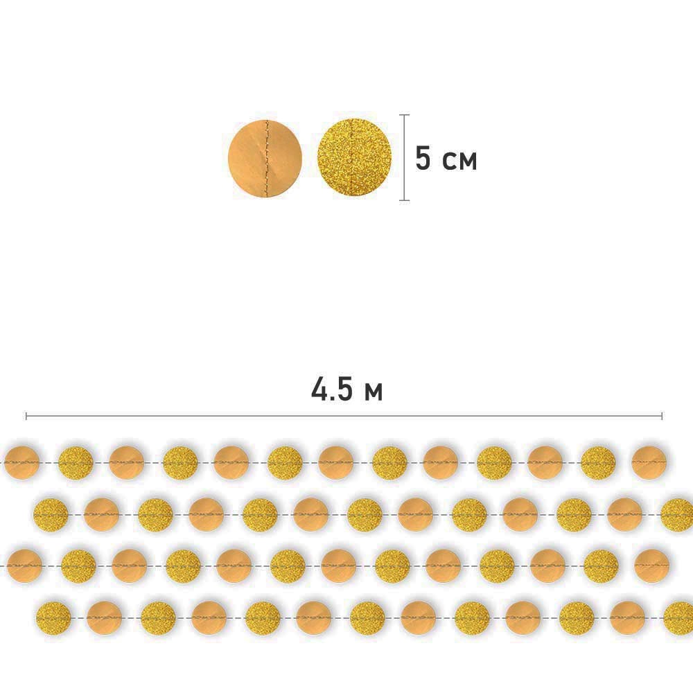 Гирлянда "Кружочки" блеск/металлик 5 см х 4,5 м, Золото