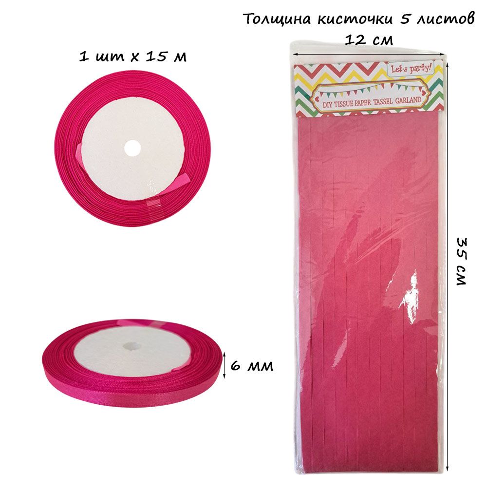 Гирлянда тассел 12 кисточек по 5 листов, амарантовый