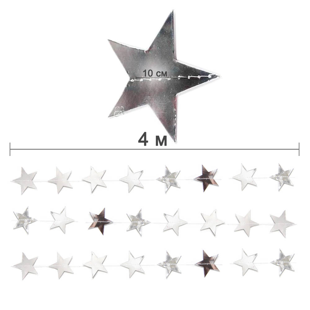 Гирлянда "Звезды" металлик 10 см х 4 м, серебро