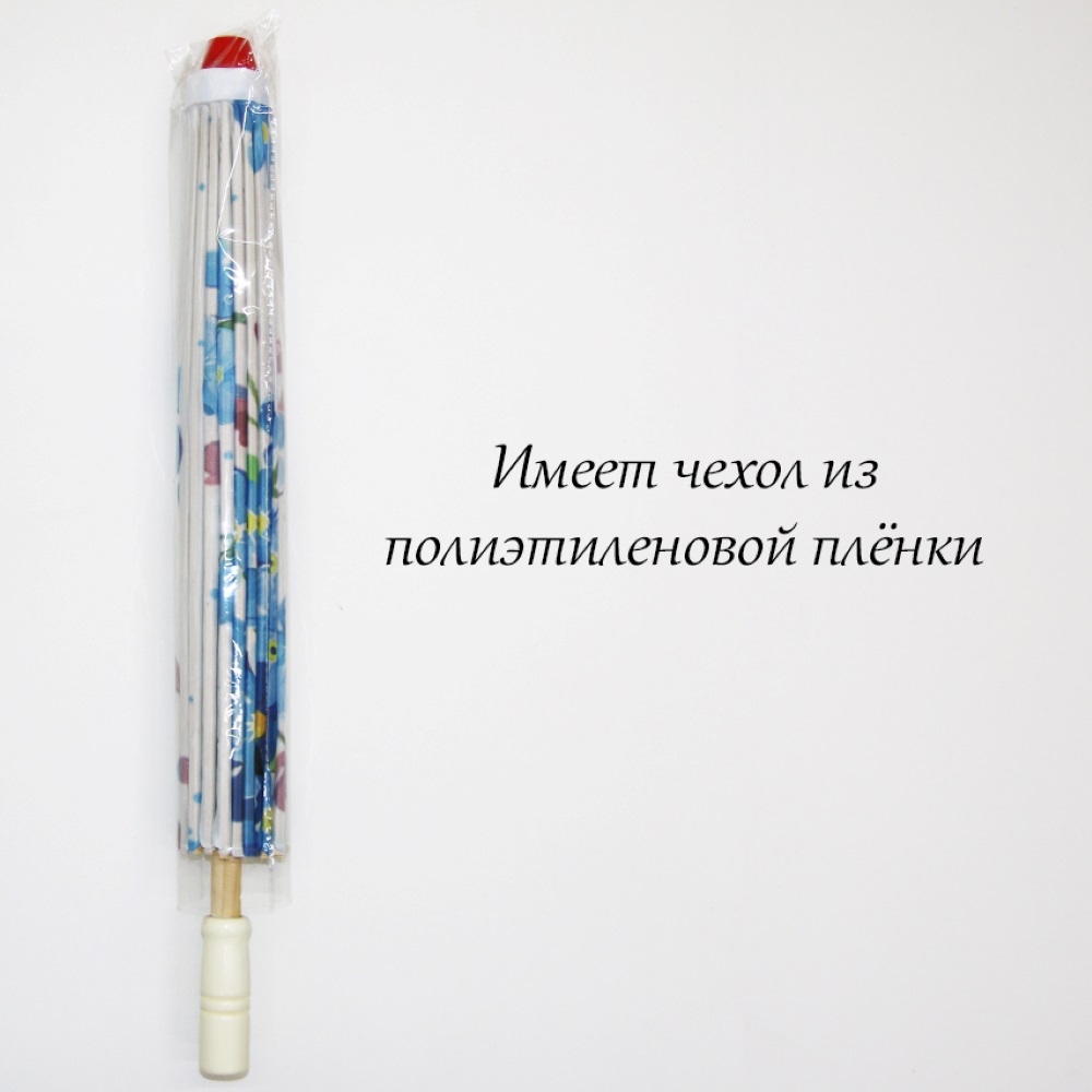 Каркас зонтика выполнен из дерева,купол зонта изготовлен из водоотталкивающего материала,который не пропускает воду.