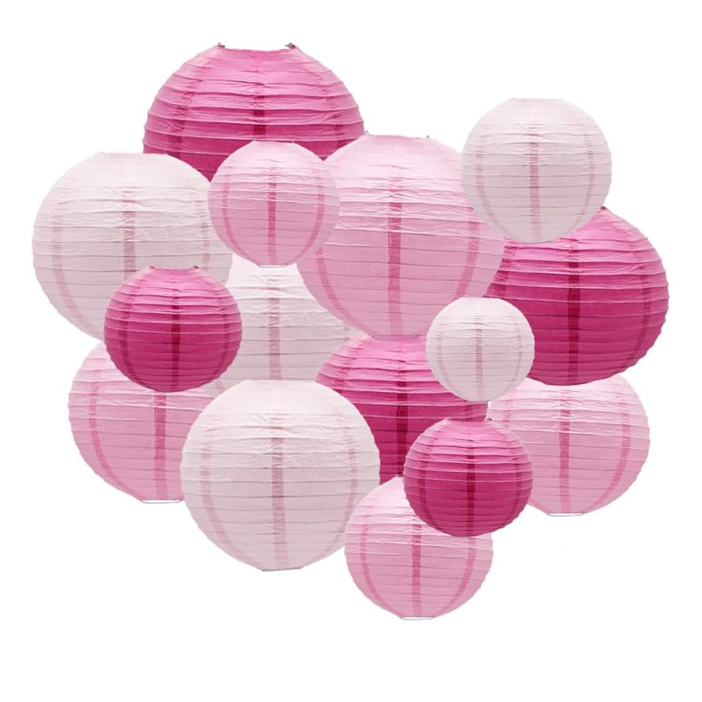 Набор подвесные фонарики 15 шт св.розовый+розовый+малиновый