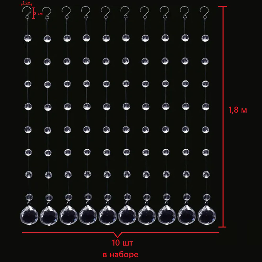 Набор струн с хрустальными бусинами №7, 10шт х 1,8м