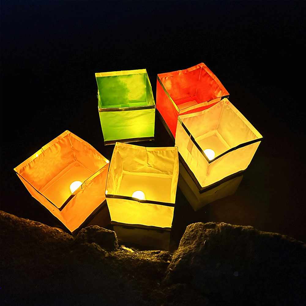 Плавающий фонарик "Куб" 11х11 см золото+оранжевый