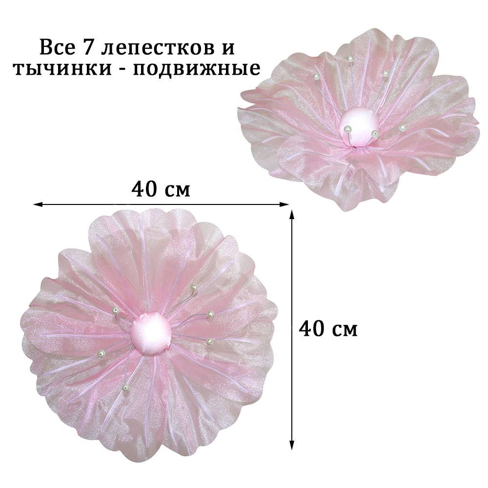 Цветок из органзы 40 см, розовый