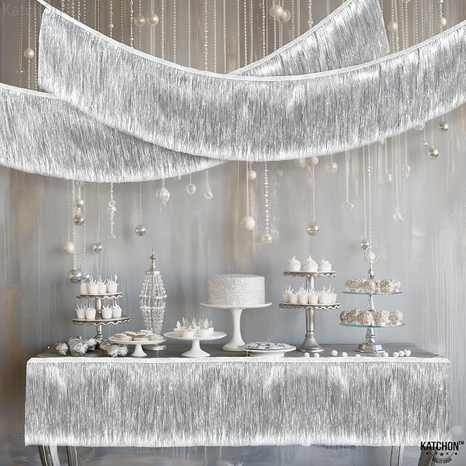 Растяжка бахрома 20см х 1,8м, металлик серебро