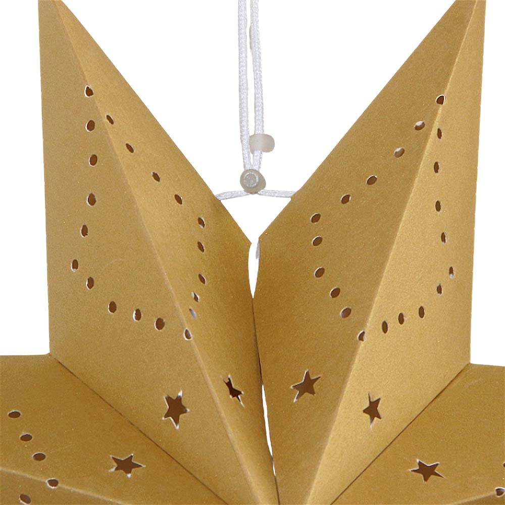 Аккуратно расправьте лучи, чтобы придать звезде идеальную объемную форму, затем зафиксируйте встроенным шнуром для подвеса.